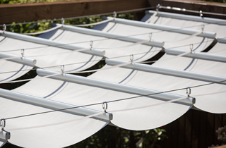 Wave Shades are easy to maintain and clean. The shade can be unclipped in a matter of minutes and the mildew resistant fabric and hardware parts can be submerged in water, washed by hand or cleaned with a pressure hose. The wire cables need to be greased annually to make sure the shade slides freely.